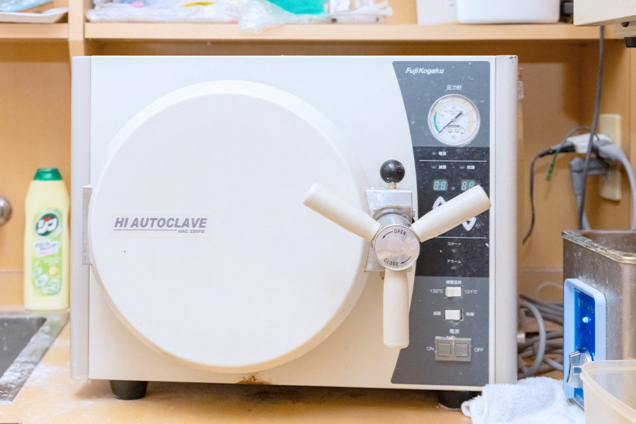 治療に使った器具を滅菌し、清潔な状態にするための設備です。